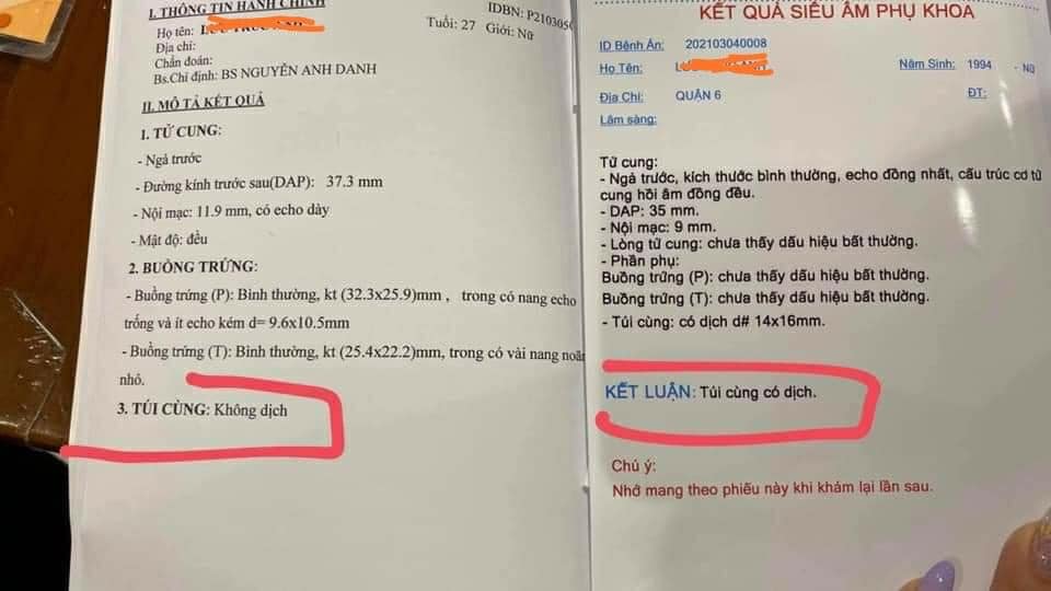 Khám xong mình mới tá hoả, thì ra mình không có bị gì hết. Huyết trắng bình thường, không viêm nhiễm bất kì thứ gì. Mình có cho bác sĩ xem hình chụp, mình bảo họ bảo con bị nang nên phải mổ thì bác sĩ bảo đây là bình thường mà đâu có bị. Rồi mình cũng hỏi là họ đốt như vậy để làm gì, thì bác sĩ bảo họ dùng sai phương thức, trường hợp của con không cần làm gì cả vì mọi thứ đều bình thường.
