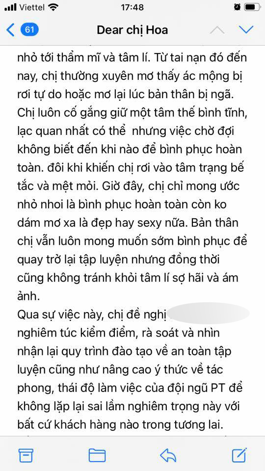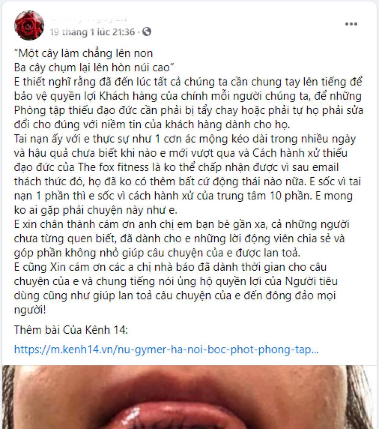 Hiện, vị khách vẫn chưa hết "sốc" bởi chấn thương nghiêm trọng gặp phải cũng như cách hành xử từ một hệ thống phòng tập lớn như The Fox Fitness.