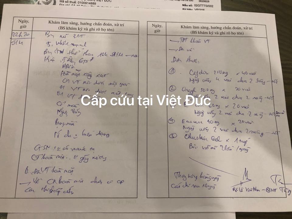 - Tuần đầu khi em bị tai nạn thì bạn quản lý và PT có ý định sang thăm hỏi và “gửi một phần chi phí” để khắc phục nhưng lúc đó các bác sĩ của cả Việt Đức và Răng Hàm Mặt Trung Ương đều nói rằng cú ngã quá mạnh như thế cần theo dõi sát ít nhất 3 tuần. Do đó, em từ chối gặp bên kia một phần vì miệng em sưng đau do các vết khâu trật khớp hàm không nói được và phần nữa là em chưa khám chữa xong nên không biết 1 phần chi phí để khám chữa mà các bạn nói nên là bao nhiêu thì hợp lí cho cả 2 bên.