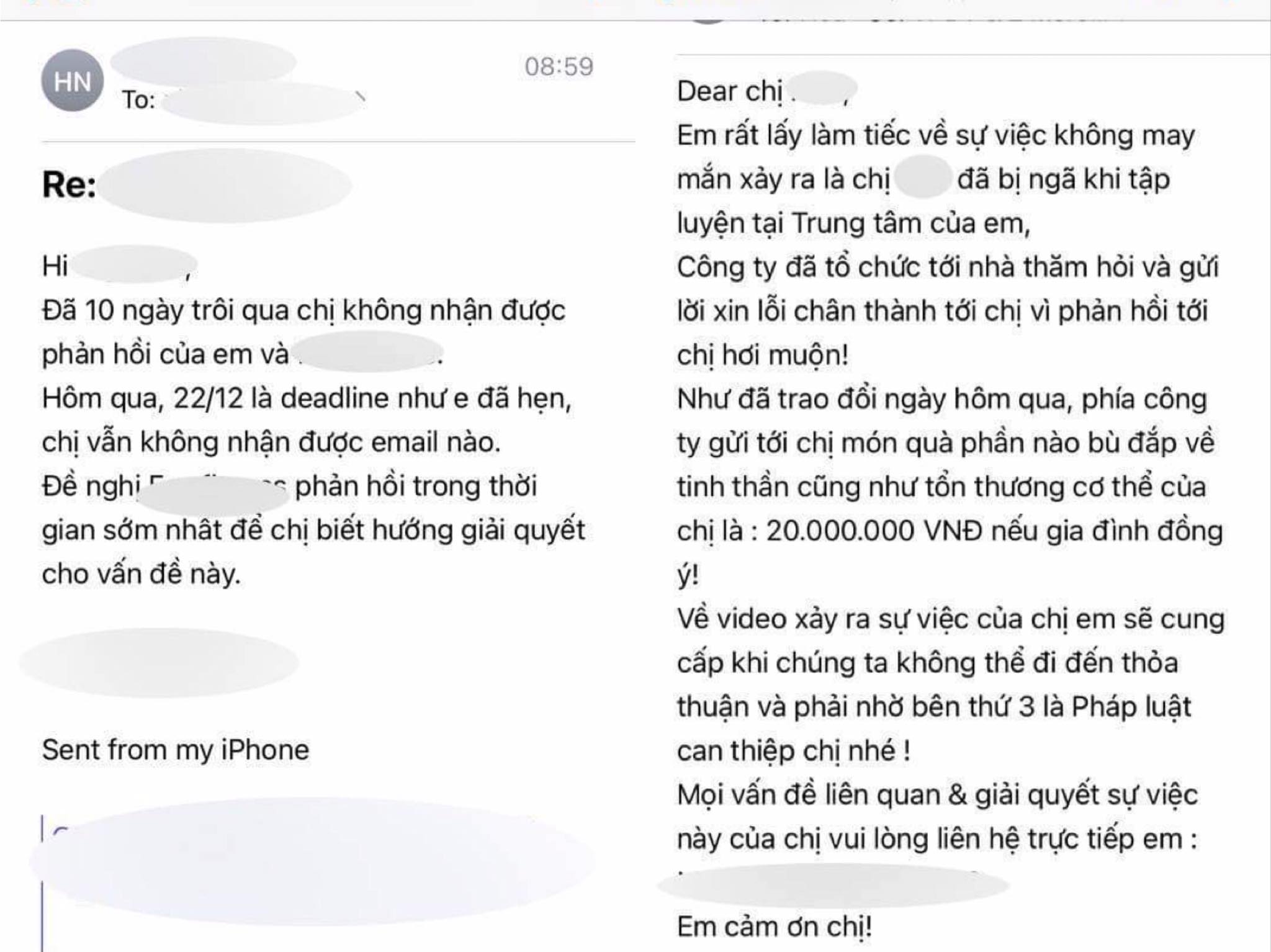 Một số hình ảnh trao đổi qua email giữa nữ khách hàng và đại diện phòng tập:
