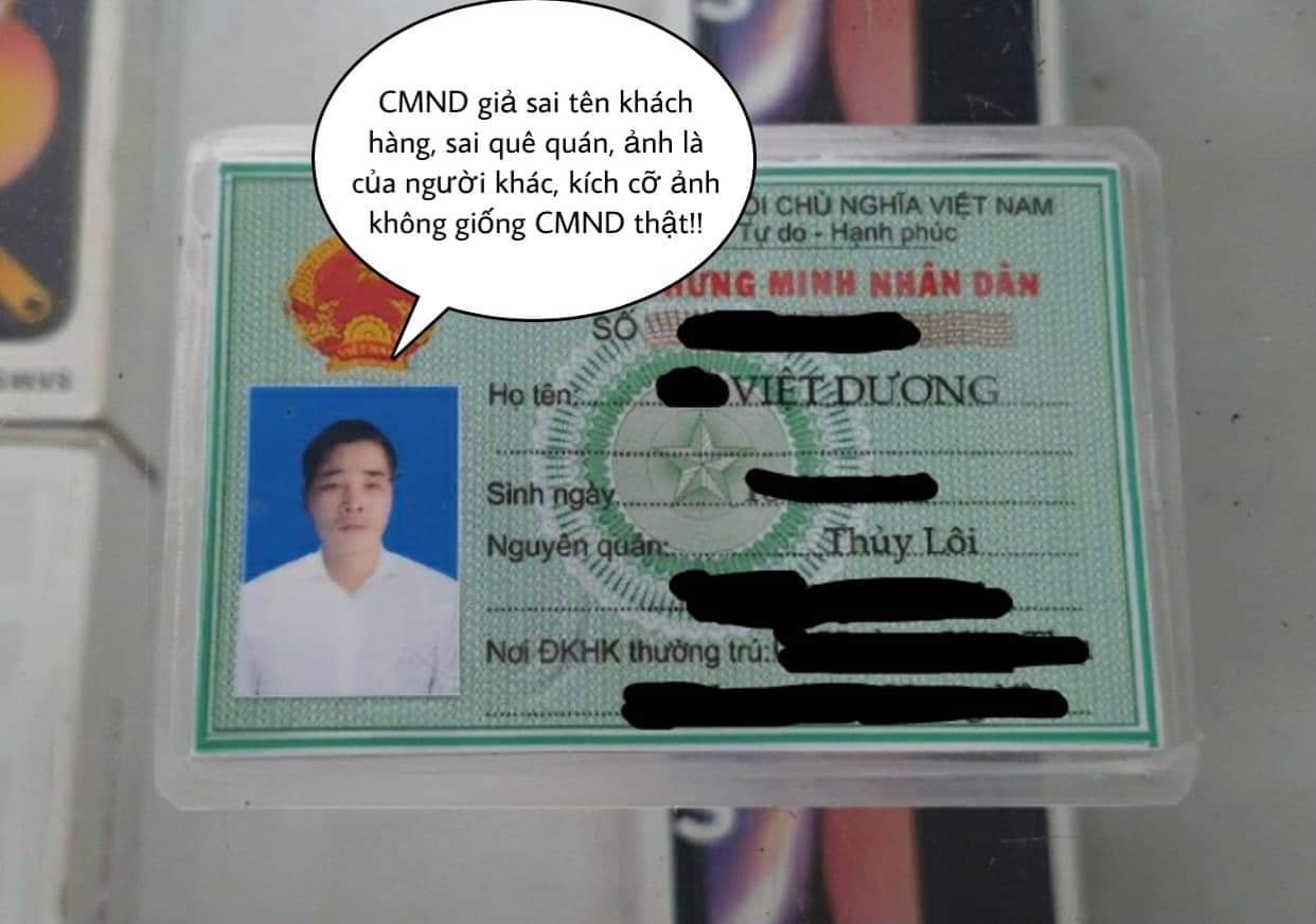 + Tên m là “xxxx Viết Dương”, nhưng Giấy CMND giả ghi “xxxx Việt Dương”.